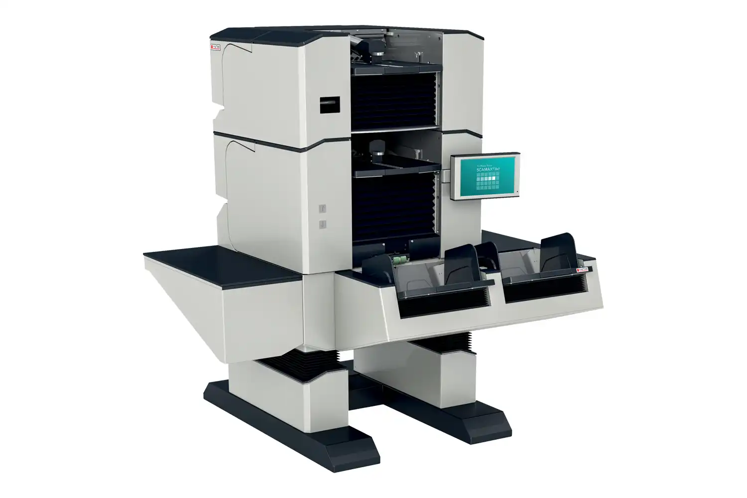 The SCAMAX® 8×1 is an extremely high-volume document scanner designed to deliver precision, speed, and durability for demanding production environments. With modular upgradability, superior paper handling, ergonomic features, and a low total cost of ownership, it is the ideal solution for large-scale scanning applications. Its robust build ensures reliability, while advanced features like the dual input hopper and scratch-resistant glass guides maximize efficiency and longevity.