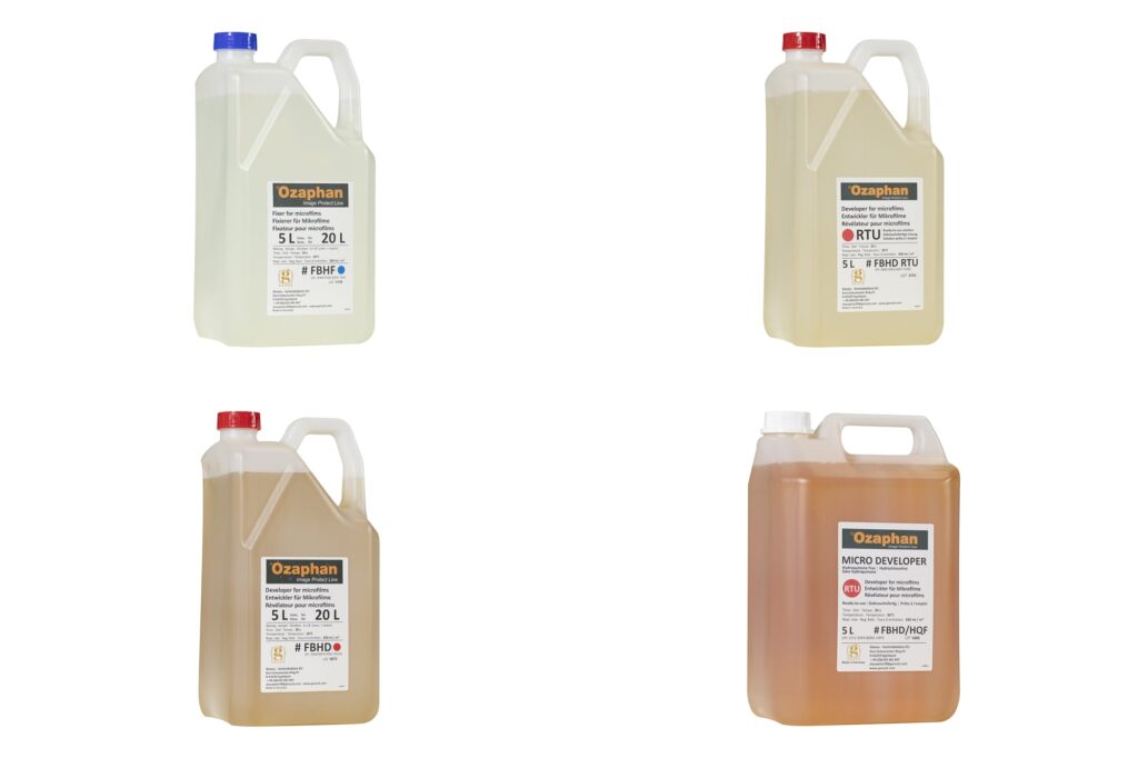 Once your documents have been microfilmed (Photographed), onto a roll of camera film the film will need processing using developer and fixing chemicals in a darkroom environment. Both developer and fixer can be supplied in concentrate or ready to use format.