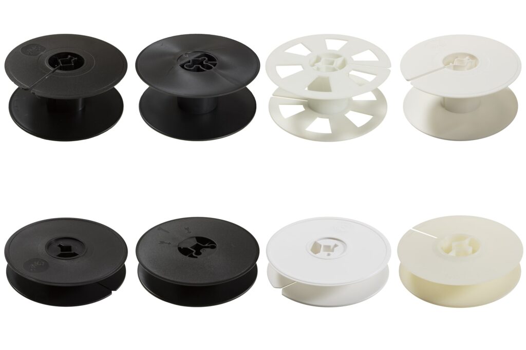 Solid flange spool with built in trailer lock – Many readers and reader printers need to have the end of the film trapped securely in the centre of the film. This is so that it cannot be accidentally pulled out when the film is completely wound to the end and jam the equipment. This spool has a built in trailer lock.