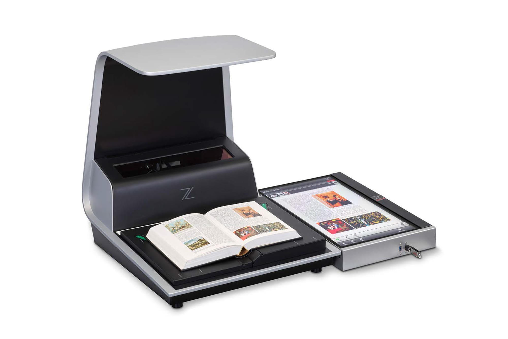 The Zeta A3+ Book Scanner is a high-performance tabletop scanner designed for scanning books, newspapers, and large documents. With its optional integrated book cradle, it’s perfect for Digitising historical books, new books, magazines, files, contracts, balance sheets, and more. This multifunctional system is ideal for use in libraries, archives, universities, schools, and offices such as local authorities, copy shops, banks, insurance companies, solicitor’s offices, and media companies. It combines excellent data quality with an attractive design and user-friendly operation. The Zeutschel Zeta Comfort is a high-performance A3+ tabletop scanner, designed for scanning books, newspapers, and large documents. It comes with an optional integrated book cradle, allowing it to handle a variety of items, including historical books, magazines, files, and contracts. Whether in libraries, archives, universities, schools, or office environments like copy shops, banks, and insurance companies, this scanner provides both excellent data quality and ease of use. Its compact design and multifunctional capabilities make it an ideal solution for modern offices and institutions.