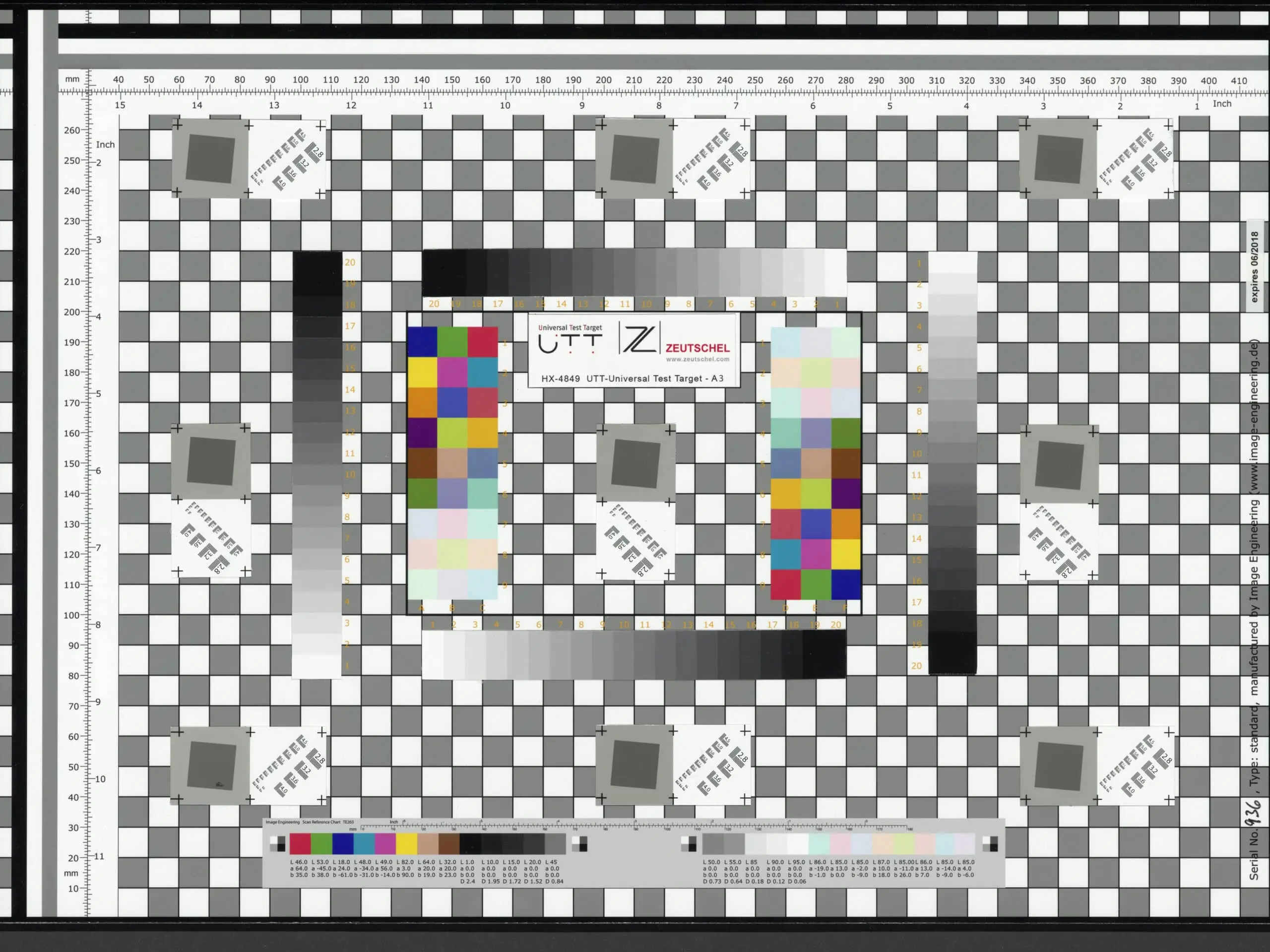 As of 1st June 2022, when we visit a book scanner we will use the UTT test chart that is designed to measure quality when adhering to Metamorfoze, FADGI and ISO standards. The UTT test chart image created will be sent back to the service department in Nuneaton and analysed using the Zeutschel QM Tool software. A record of the data collected will be archived in the scanner records on our database and a copy sent to the client. This allows us to compare data from visits to see if any aspect of quality is drifting and we can then make the relevant adjustments.